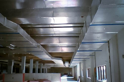 (1)風(fēng)管應(yīng)盡量少占建筑空間,并不妨礙生產(chǎn)操作。通常沿著墻、柱、樓板或屋梁敷設(shè),安裝在支架或吊架上。